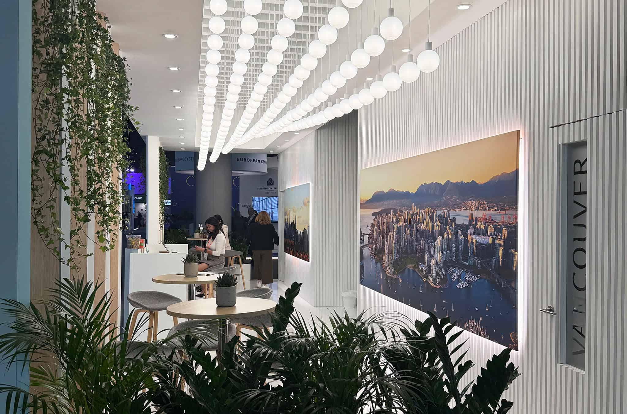 Privacy for pre-arranged meetings was ensured via dedicated meeting zones. This provided discretion and comfort, ensuring productive discussions in a professional setting. Content surfaces featured impactful graphics and imagery inspired by Canada’s landscapes and cultural motifs, creating a strong sense of identity.